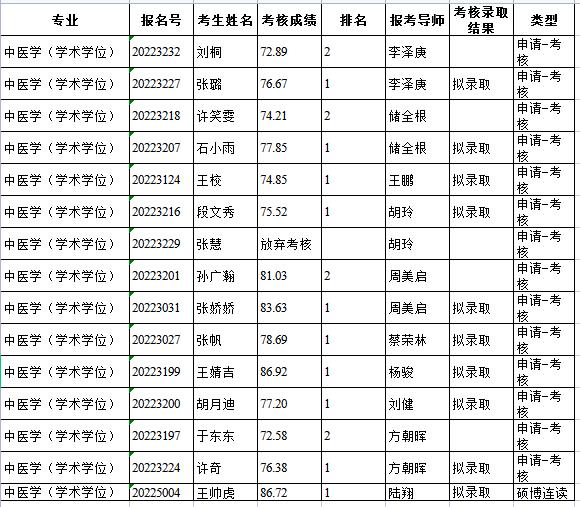 经综合考核小组考核、博士招生工作领导小组审议、中医学院党政联席会审定通过,现对安徽中医药大学2022级中医学博士研究生(学术学位)拟录取名单进行公示,结果如下: