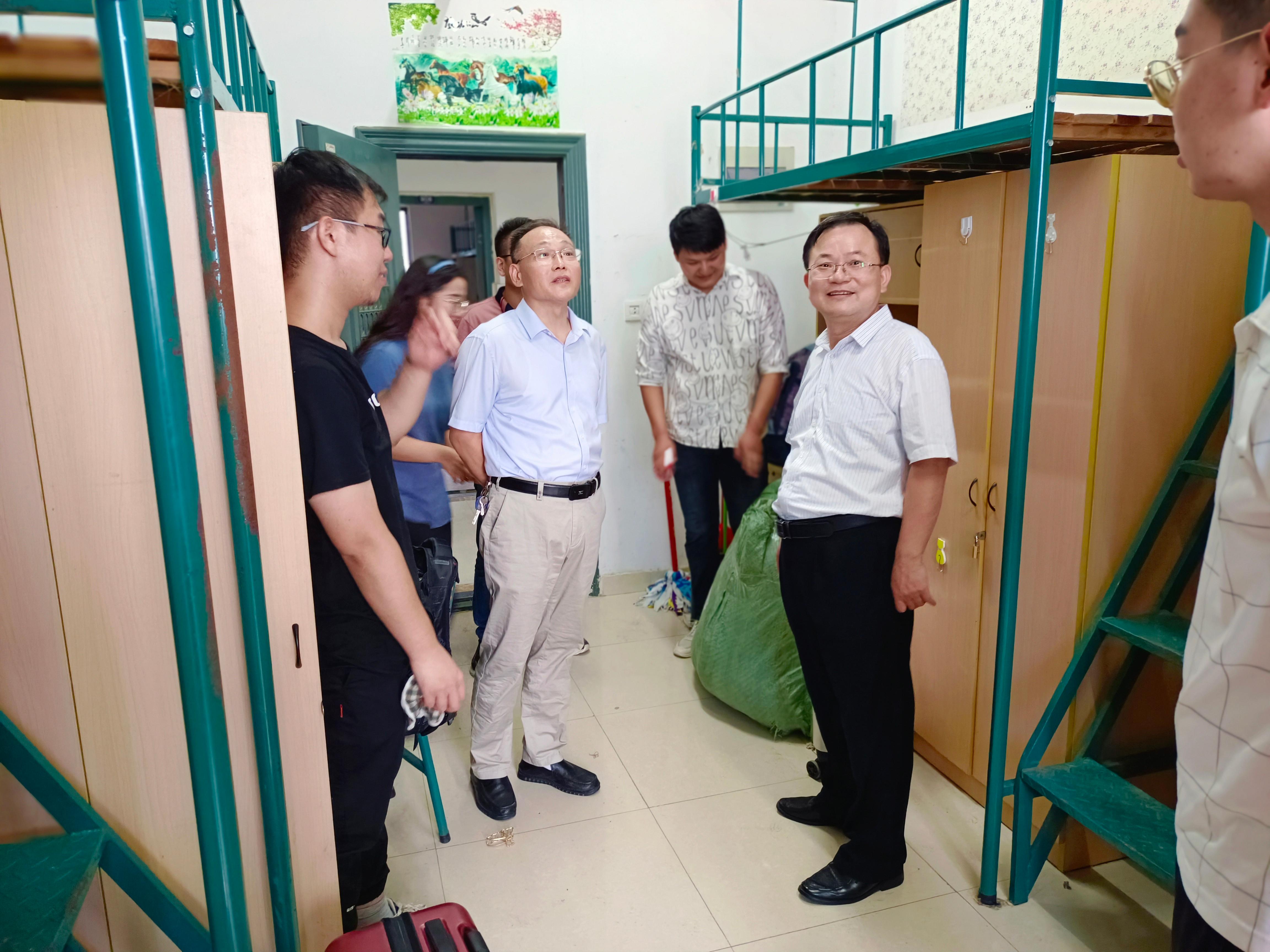 9月2日下午,中医学院党委书记杜明、院长方向明带领辅导员老师走访2021级研究生新生寝室,检查疫情防控工作,了解学生住宿情况。
