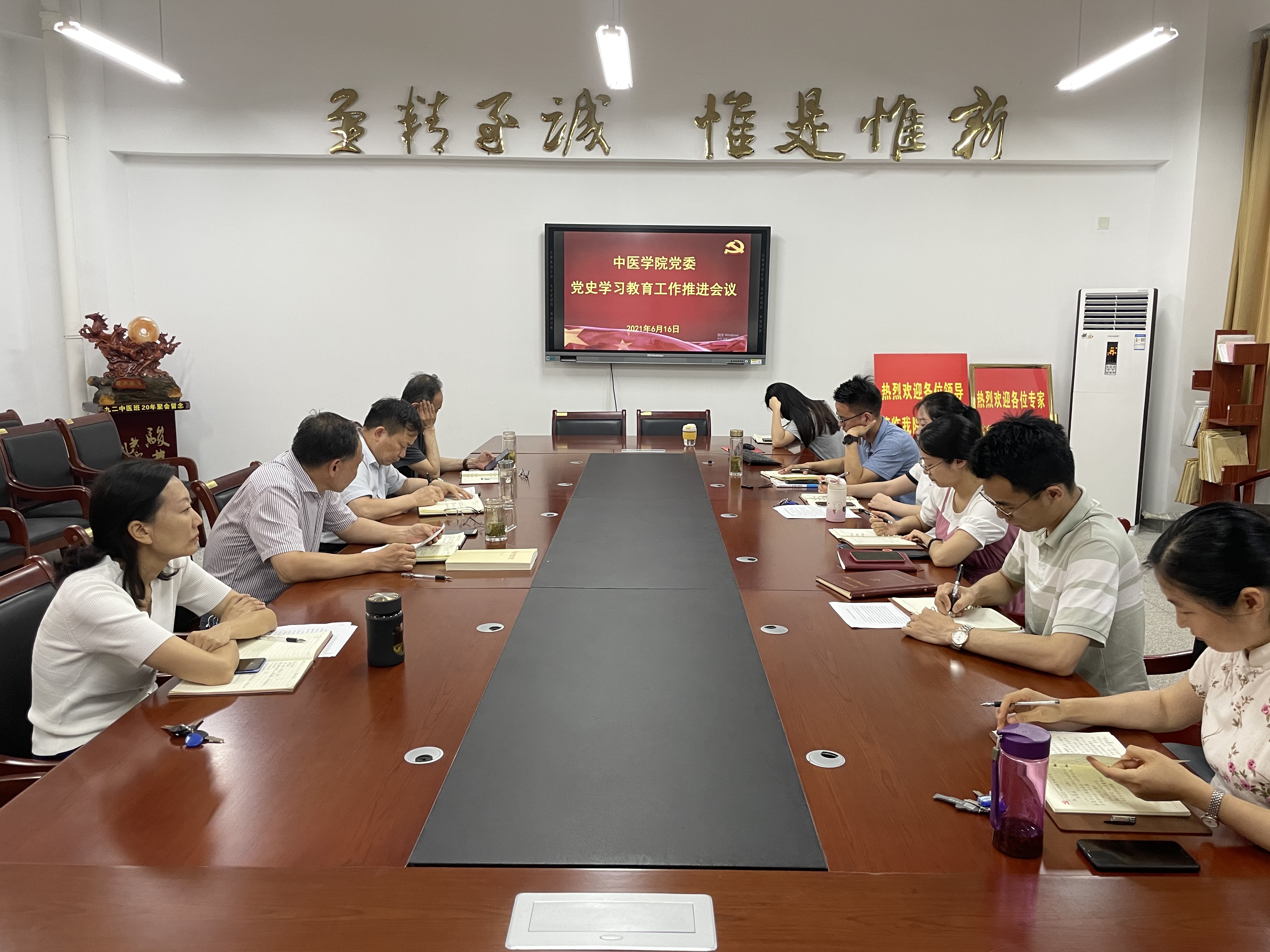 6月16日下午,中医学院党委在至精楼3楼学院会议室召开党史学习教育工作推进会,学院党委中心组成员、各党支部书记参会,会议由学院党委书记杜明主持。
