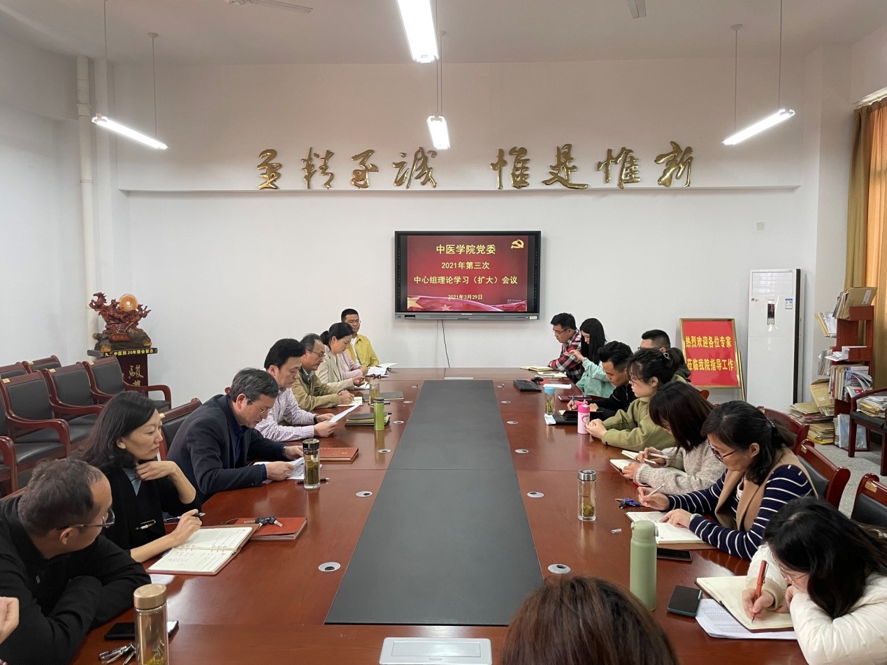 3月29日下午,中医学院党委在B9楼A301学院会议室召开2021年第三次理论学习中心组(扩大)会议,学院党委中心组成员、各系部(中心)主任副主任、各党支部书记副书记、全体行政人员及全体辅导员参会,会议由学院党委书记董昌武主持。