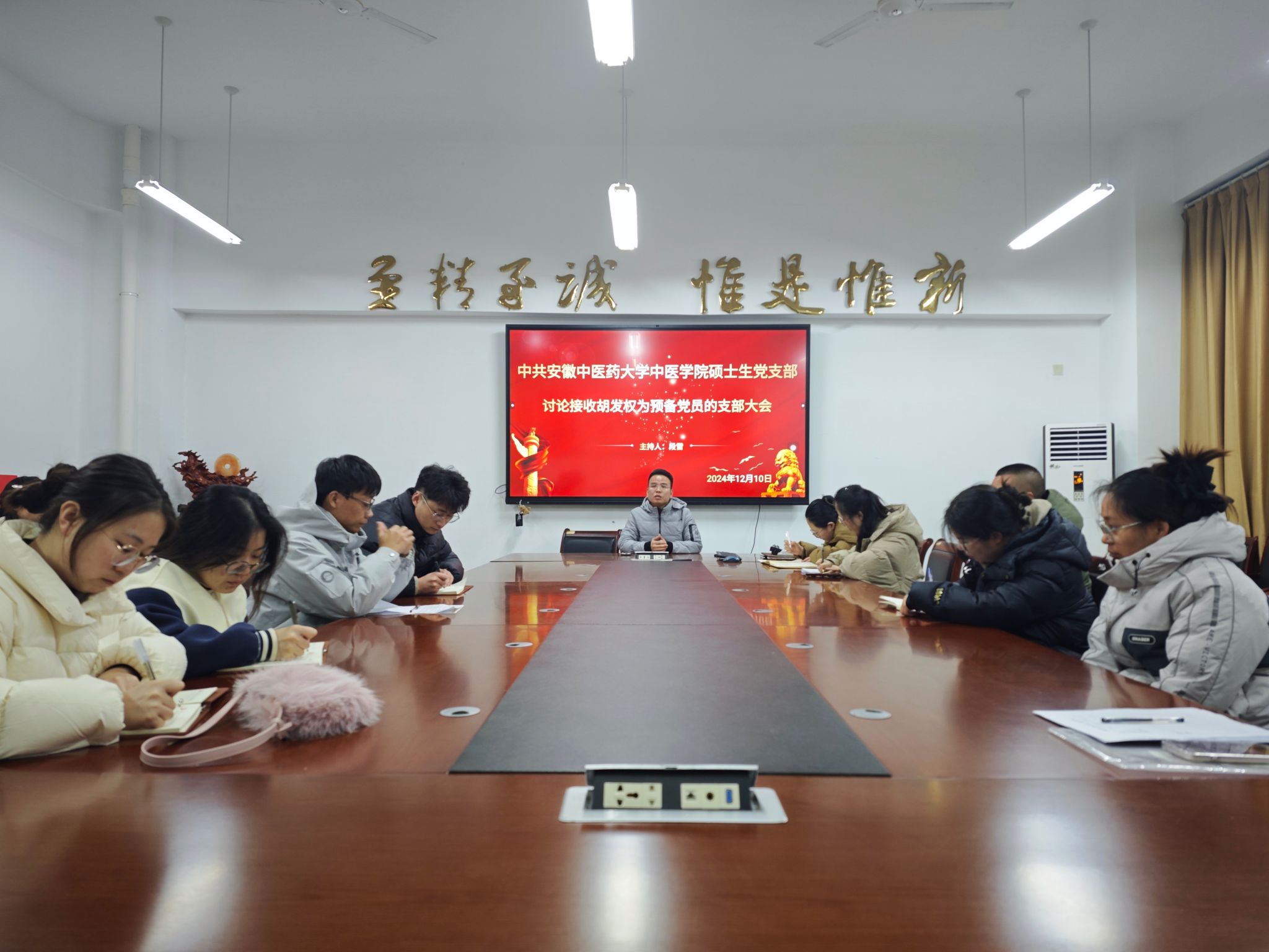 12月10日晚,中医学院硕士生党支部在301会议室召开预备党员接收大会。大会由党支部书记段雷主持,支部全体党员参加。