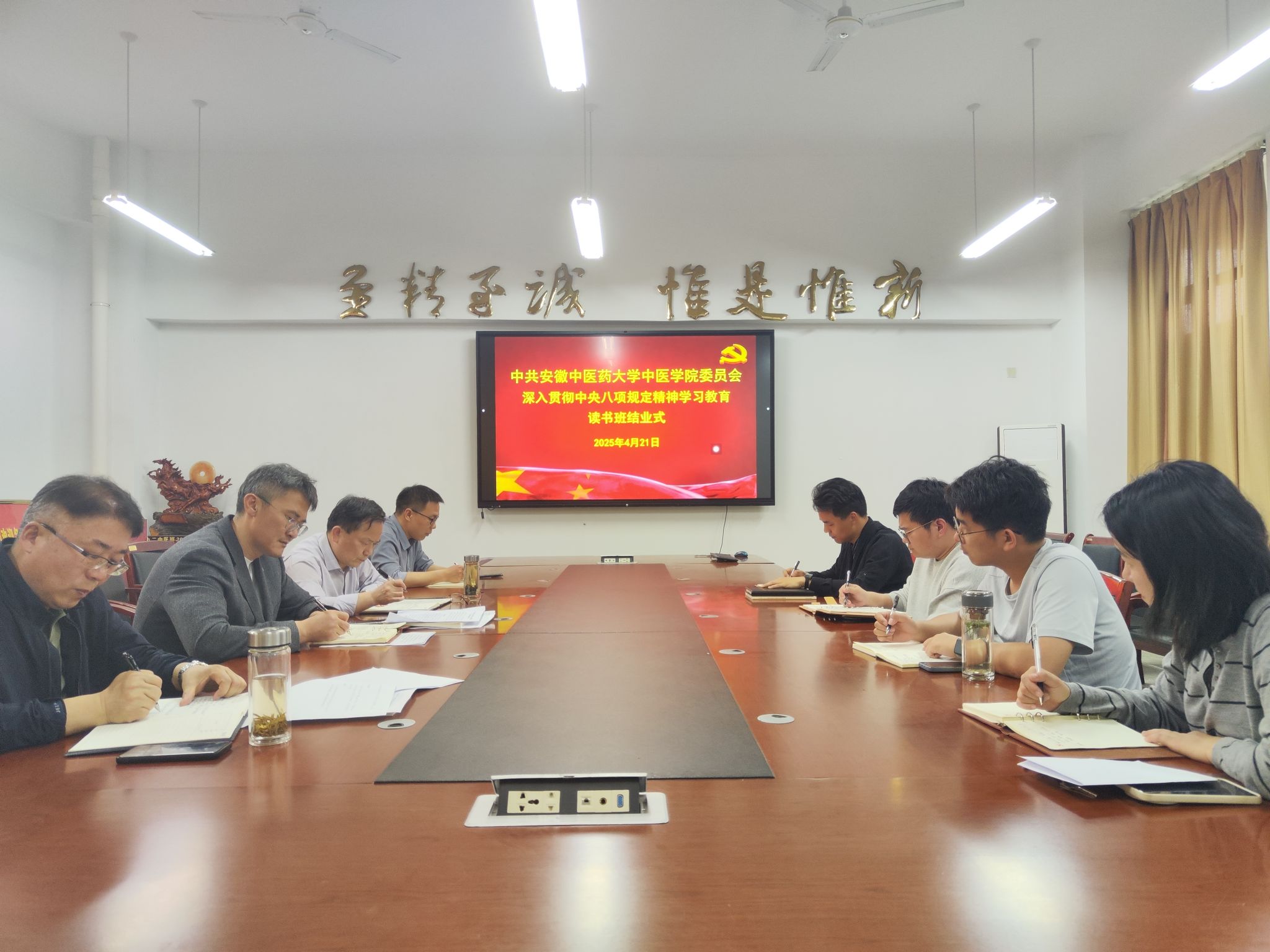 4月21日下午,按计划,中共安徽中医药大学中医学院委员会深入贯彻中央八项规定精神学习教育读书班在学院301会议室结业式如期举行。按照《中共安徽中医药大学中医学院委员会深入贯彻中央八项规定精神学习教育读书班方案》相关会议议程,现场全体班子成员重点发言,教工三支部书记魏晓露与博士生支部书记贾学昭作随机发言。会议由学院党委书记方晓主持,学院党委理论学习中心组成员,各支部书记,各办公室参加。