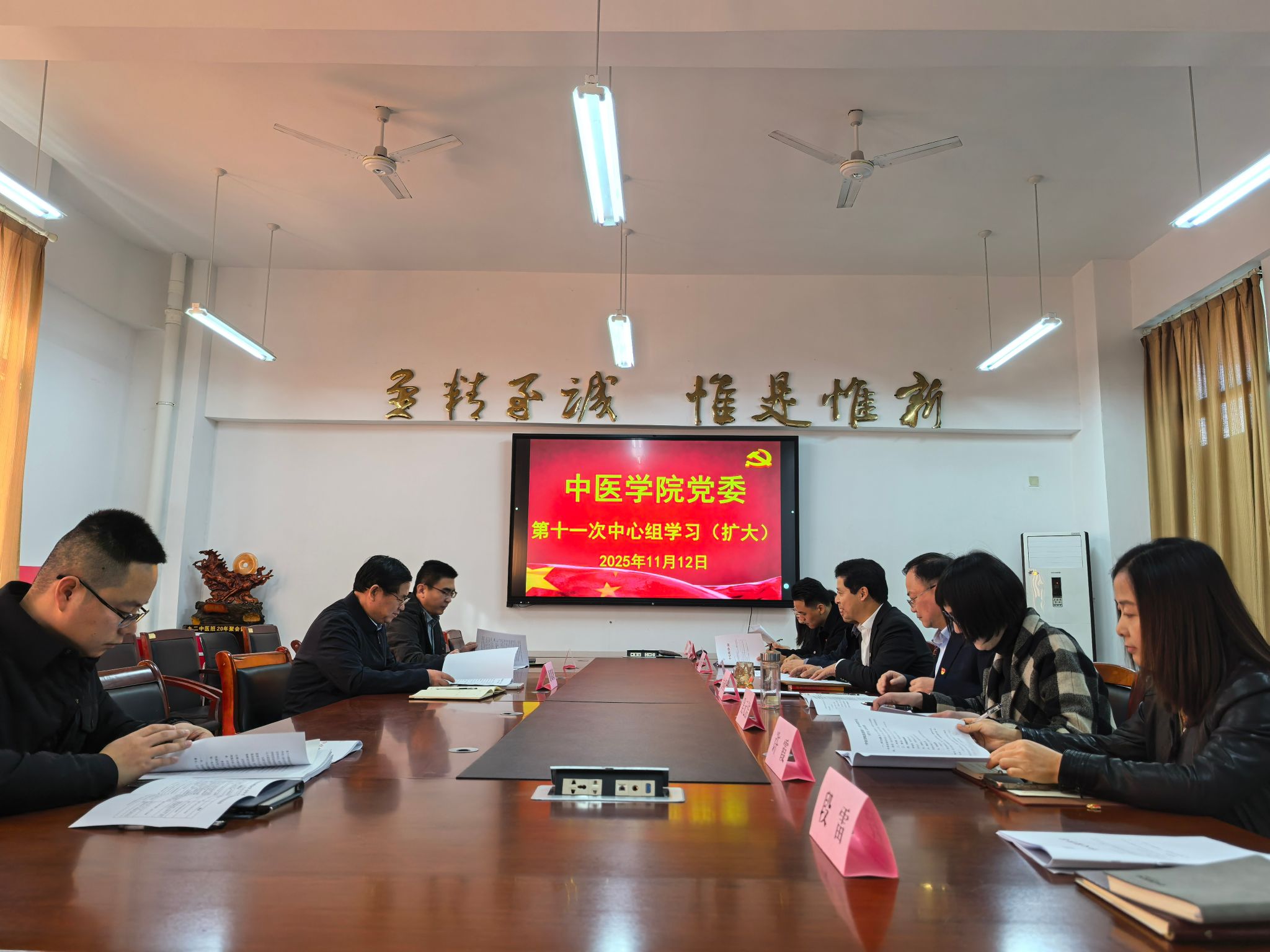 11月12日上午,中医学院党委召开2025年第十一次党委理论学习中心组(扩大)会议,校党委书记谢瑞瑾莅临指导。学院党政班子、党支部书记及系部主任参加会议。会议由学院党委书记张亚辉主持。