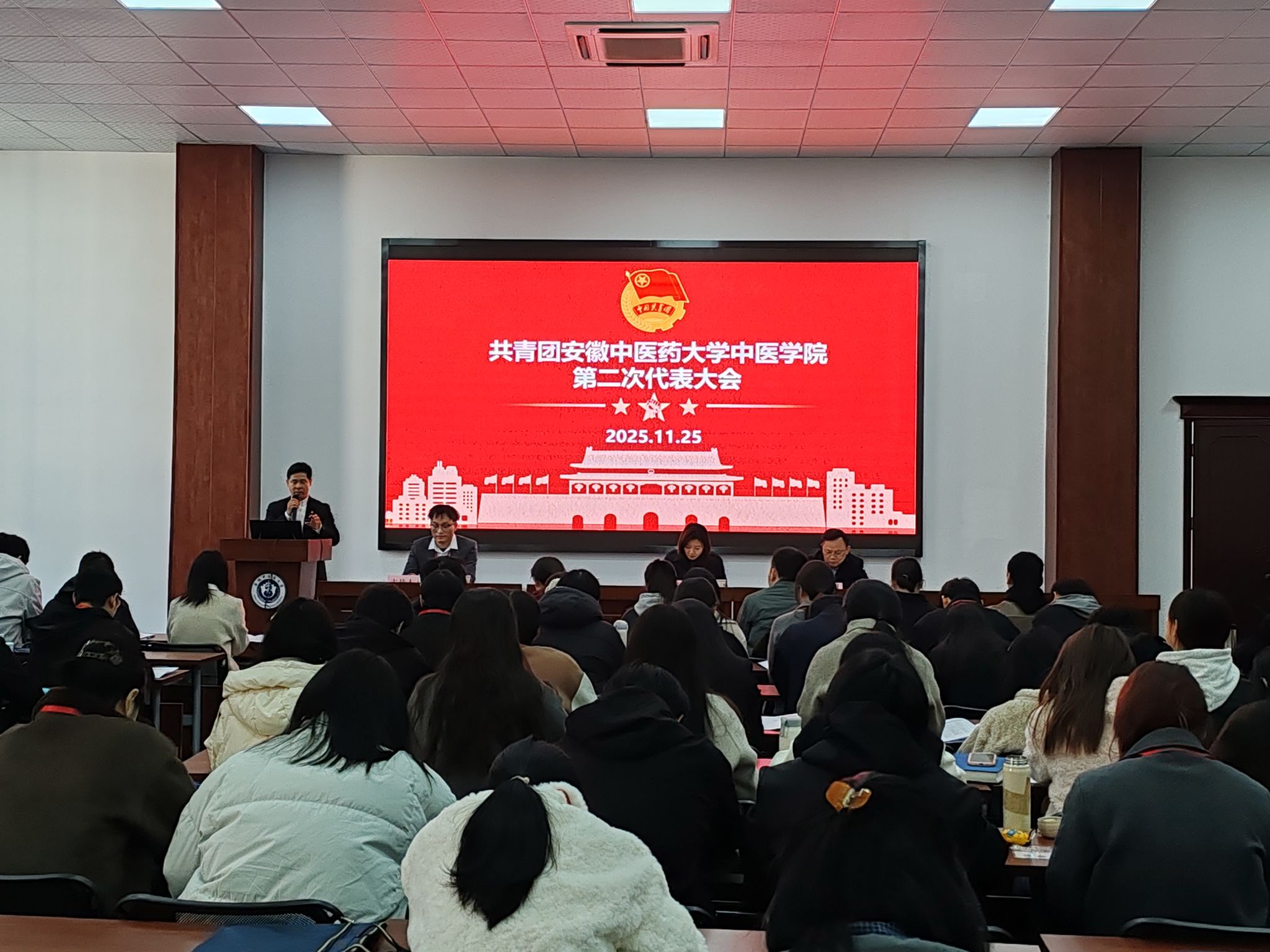 11月25日下午,共青团安徽中医药大学中医学院第二次代表大会在学院宅仁堂会议室隆重召开。本次大会是在全校深入学习贯彻党的二十届四中全会精神、奋力推进学校“双一流”建设及学院高质量发展的关键时期召开的一次重要会议,是中医学院全体青年团员政治生活中的一件大事。