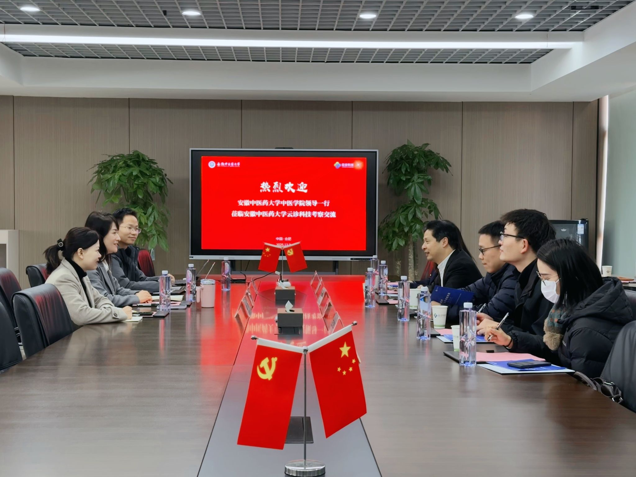 为深入贯彻落实党中央关于深化产教融合、促进高校毕业生高质量就业的决策部署,推动中医药传承创新与高等教育内涵式发展,2025年12月3日上午,中医学院党委书记张亚辉率班子成员、教授代表及学生代表一行,赴合肥云诊信息科技有限公司开展“访企拓岗促就业”暨校企战略合作交流活动。双方围绕“党建引领、人才共育、科研共创”三大方向展开深入座谈,共同探索“党建业务双融合、教学科研双促进、校内校外双循环”的校企协同发展新模式。