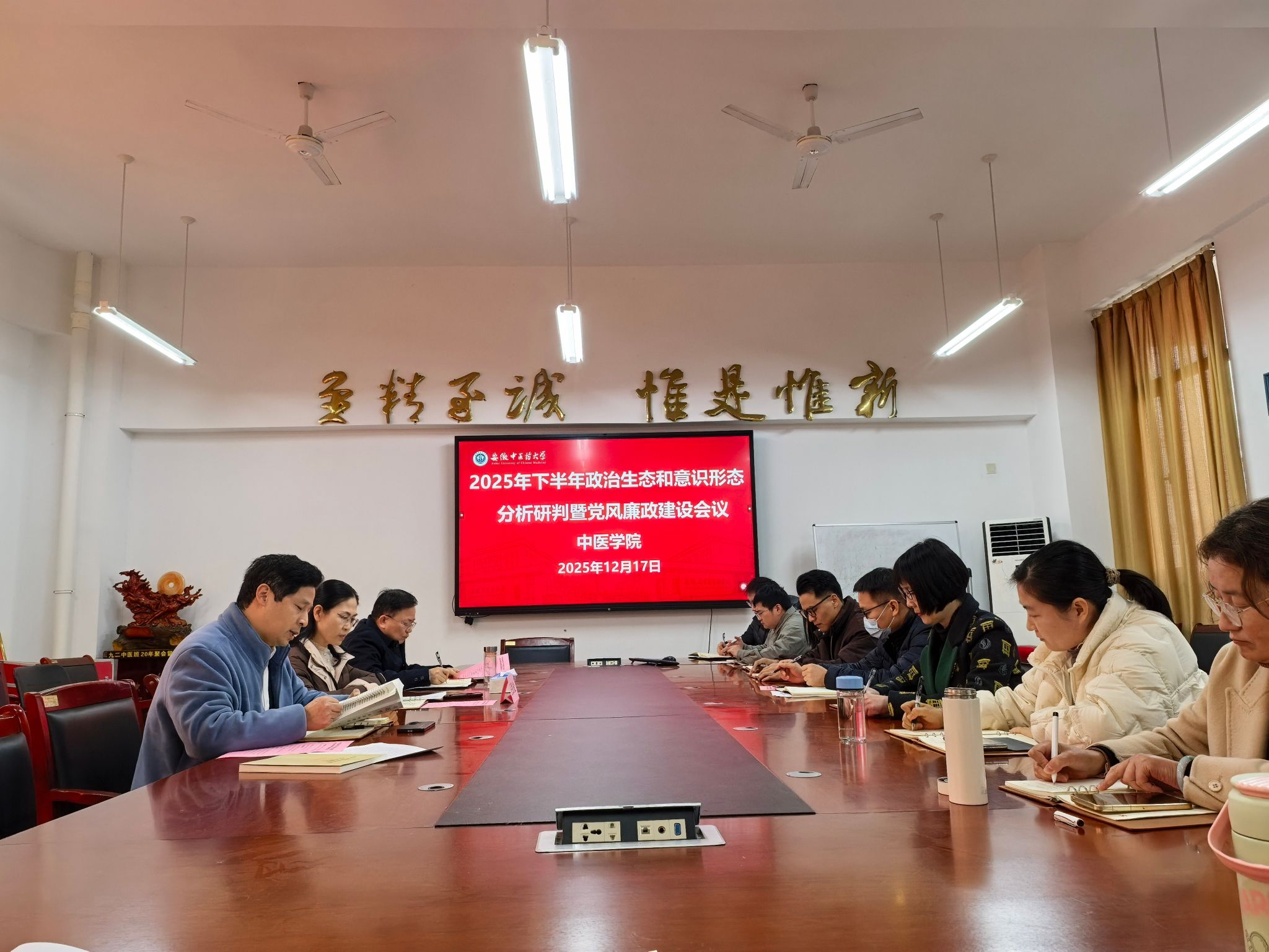 为深入贯彻落实全面从严治党要求,分析研判当前形势,持续巩固风清气正的政治生态和育人环境,12月17日上午,中医学院召开2025年下半年政治生态和意识形态分析研判会暨党风廉政建设会议。校纪委委员、中西医结合学院院长王红松列席会议并指导。学院党政领导班子成员、全体党支部书记、各系部主任参会。会议由学院党委书记张亚辉主持。