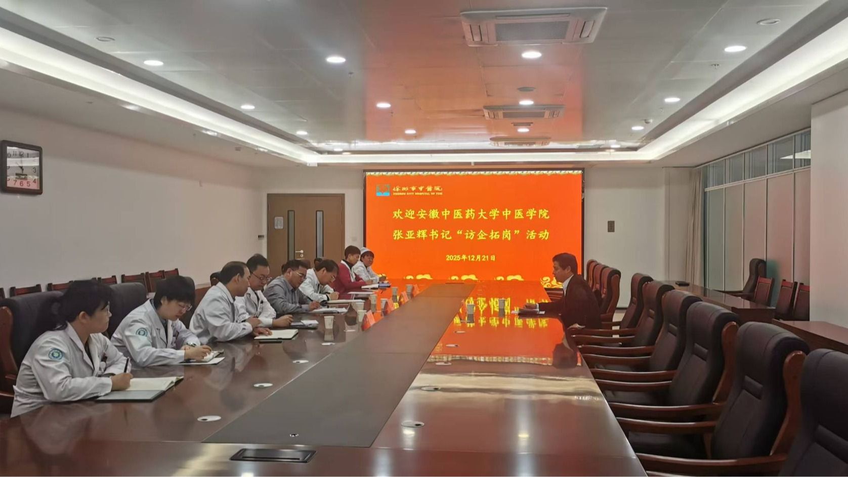 为深化校院合作,拓展毕业生就业渠道,12月21日,安徽中医药大学中医学院党委书记张亚辉一行专程赴徐州市中医院开展访企拓岗走访调研活动。徐州市中医院党委书记范从海、院长牛勇率领导班子及相关职能科室负责人热情接待并参加了座谈交流。