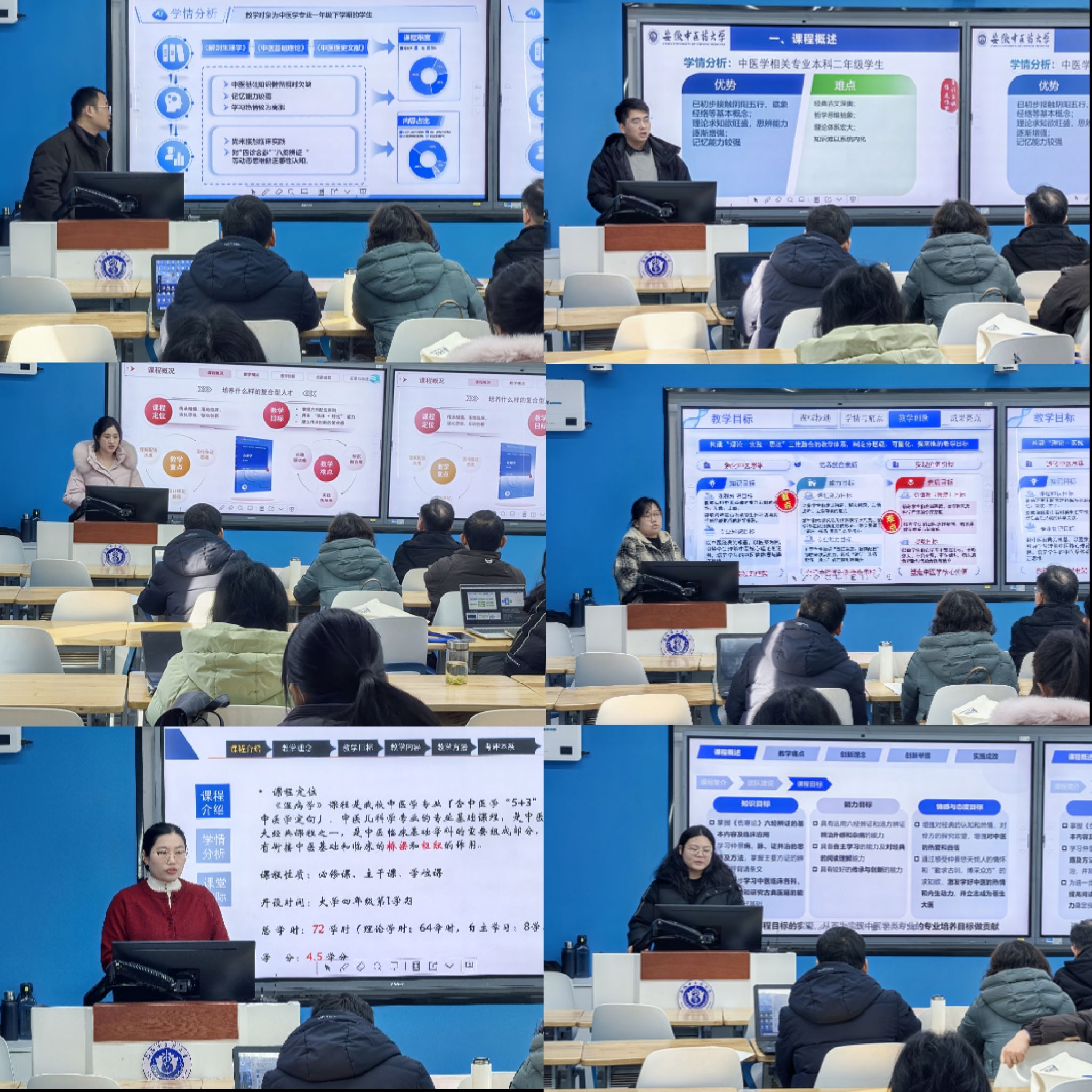 中医学院教学创新大赛院内选拔赛于1月7日在教学楼B201教室圆满落幕。本次选拔赛共有来自六个中医学核心课程团队的代表教师参赛,学院教学委员会成员作为评委进行指导,近三年新进教师全程观摩学习。