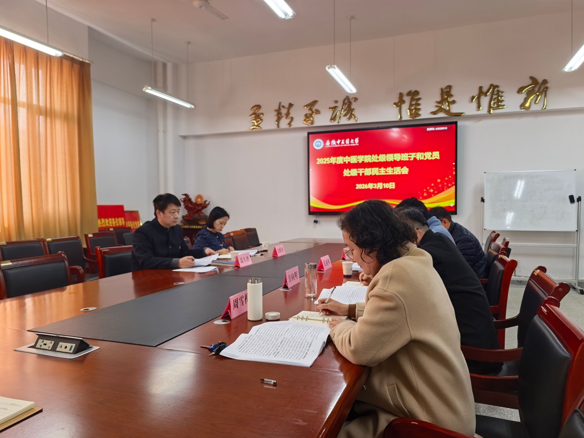 3月10日下午,中医学院党委召开2025年度处级领导班子和党员处级干部民主生活会。学校党委常委、副校长、民主生活会第五督导组组长聂久胜出席会议并作点评讲话,学校纪委副书记、纪委办公室主任、民主生活会督导组成员金晓琴到会指导。学院领导班子成员、党委委员参会,会议由学院党委书记张亚辉主持。