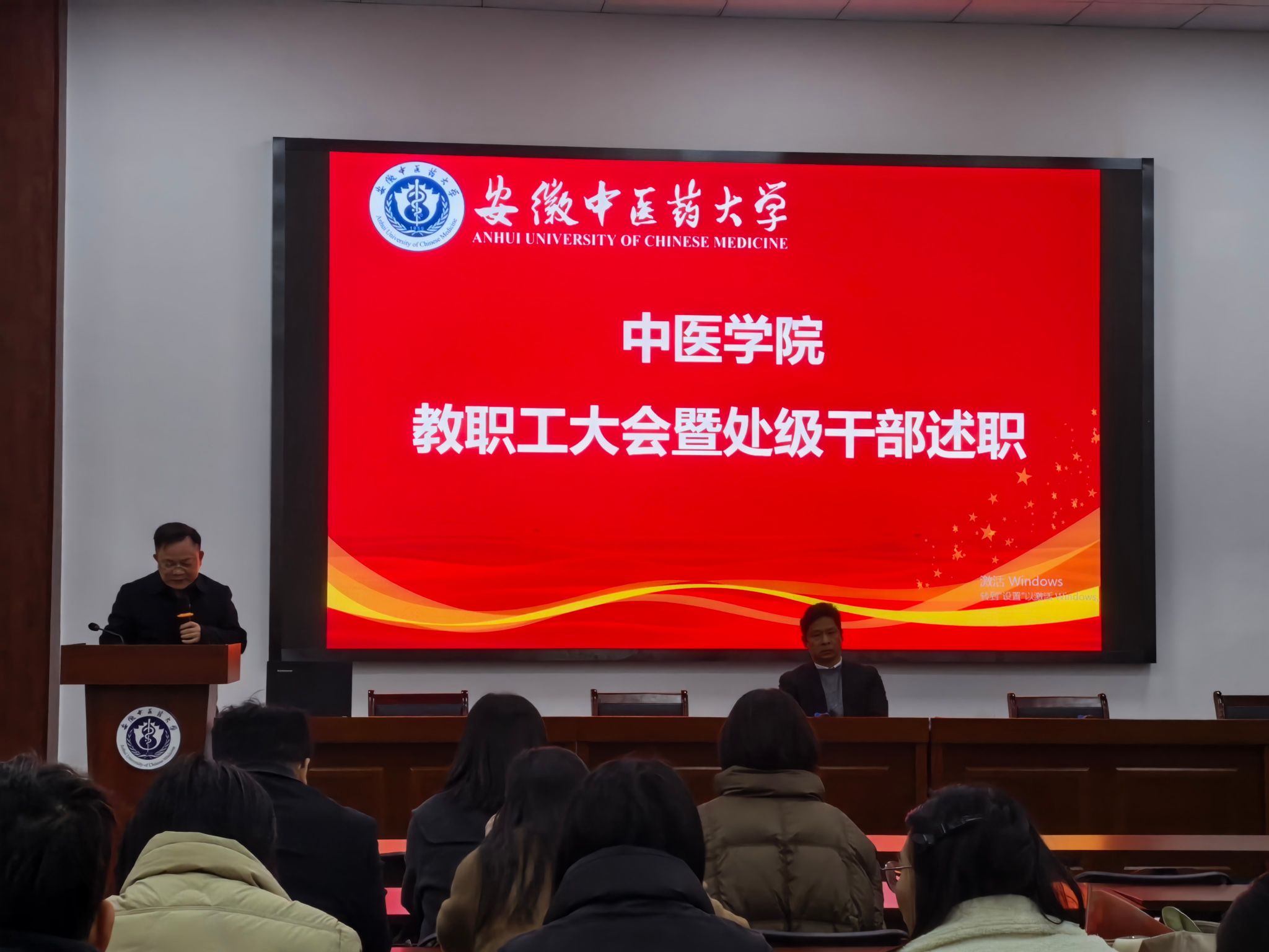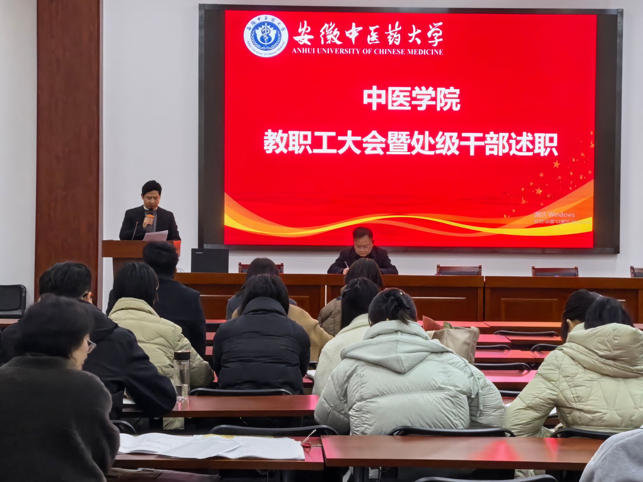 3月12日下午,中医学院召开2025年度处级领导班子和处级干部考核集中述职会,学院全体教职工参会,会议由学院党委书记张亚辉主持。