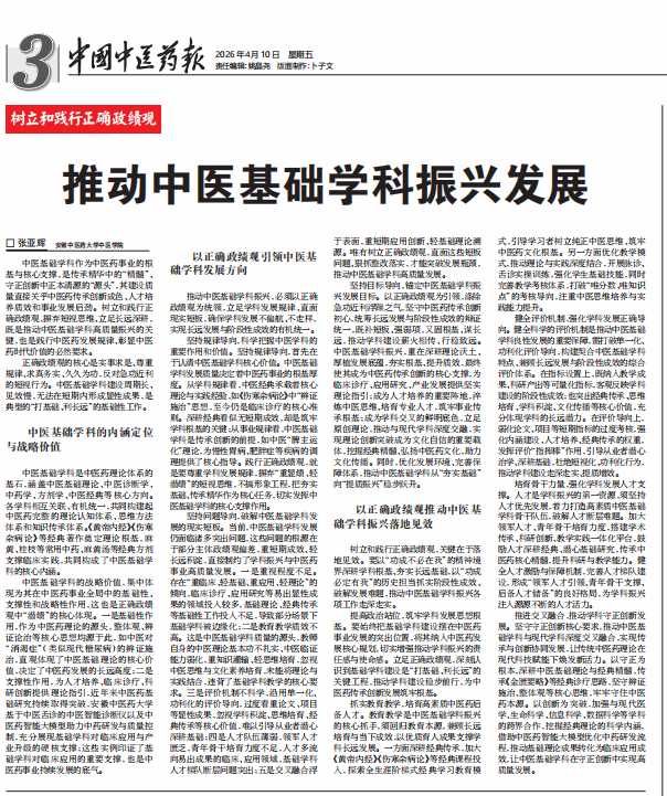 文章最后强调,要以“功成不必在我”的精神境界和“功成必定有我”的历史担当,推动中医基础学科振兴落地见效,为中医药传承创新发展和文化自信提供坚实支撑。