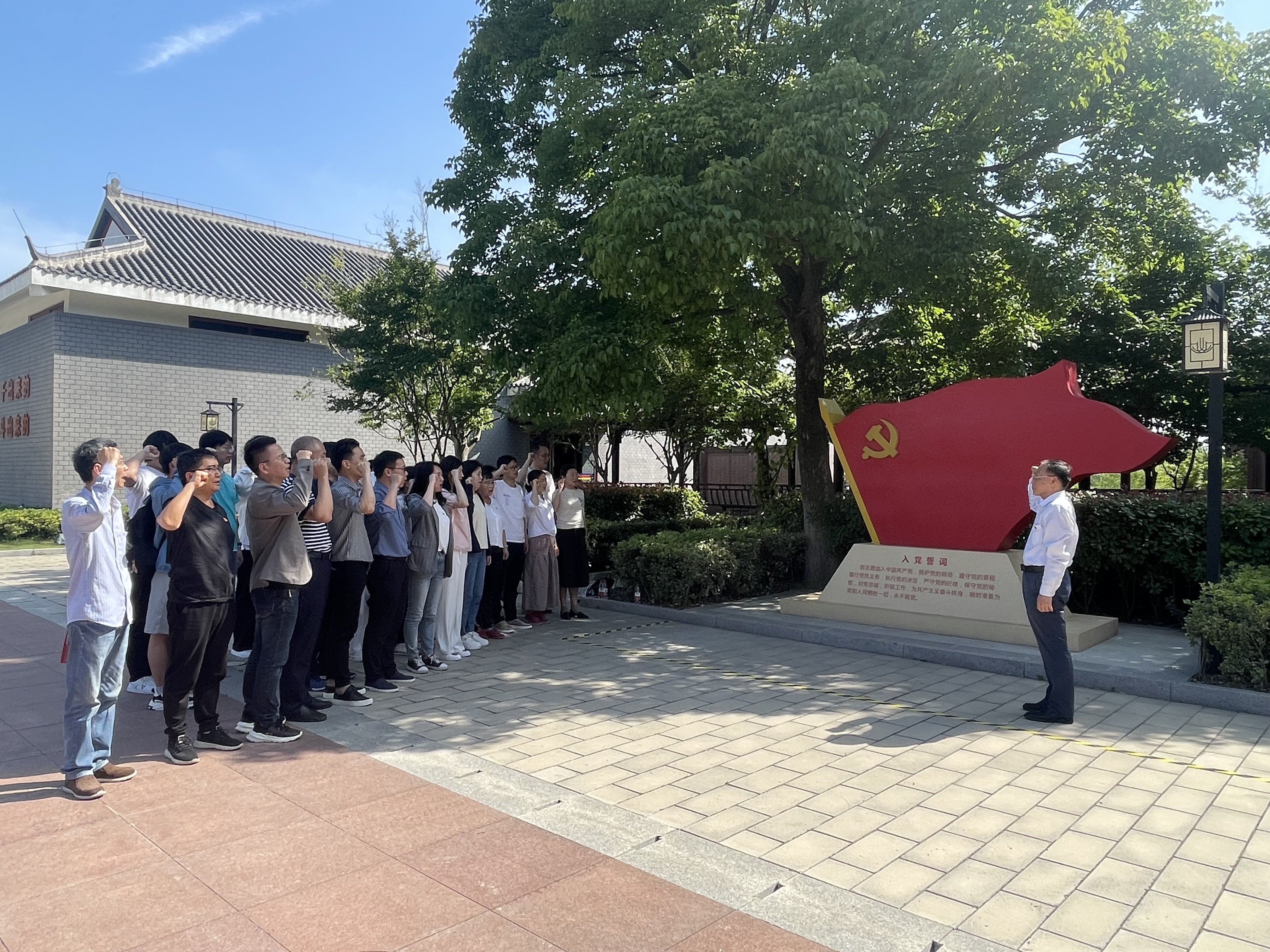 参观结束后,在党委书记杜明的领誓下,全体党员在党旗前庄严宣誓,重温入党誓词,现场气氛庄重而热烈。通过本次活动师生党员均表示,党性得到了一次升华,在日后工作中会更加坚定理想信念,时刻牢记革命先烈的奉献精神,以高度政治自觉和行动自觉践行共产党人的初心使命,为中华民族伟大复兴贡献自己的力量!