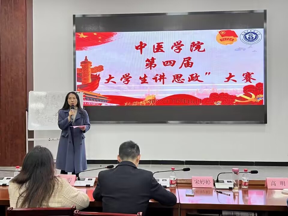 为进一步贯彻落实党的二十大精神,深入推进我校思政课实践教学改革和思政课程建设,引导大学生弘扬友善精神,提升综合素质,中医学院于11月15日17:30在中医学院宅仁堂举办中医学院第四届“大学生讲思政”大赛。安徽中医药大学中医学院党委副书记宋婷婷,安徽中医药大学校团委挂职副书记、马克思主义学院思政课教师聂多伟,中医学院教师张盛、辅导员高明、吴暇老师以及中医临床基础系研究生王斐然担任本次大赛评委。