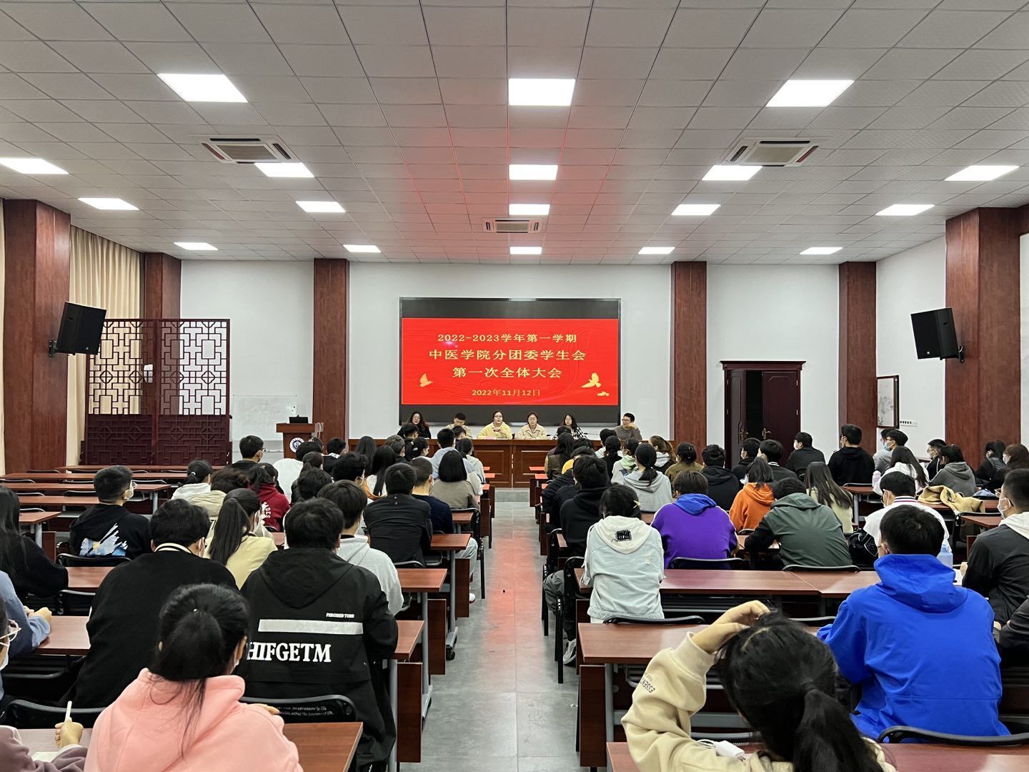 为进一步贯彻落实党的二十大精神,加强学生会的自身建设,提升学生组织的凝聚力,落实部门工作,顺利推进中医学院各项学生工作和活动的开展,安徽中医药大学中医学院分团委学生会及学生组织于2022年11月12日17:30在中医学院宅仁堂举办2022-2023第一学期中医学院学生会及学生组织第一次全体大会。中医学院分团委学生兼职副书记侯小芬、中医学院分团委学生会及学生组织全体成员参加本次会议。
