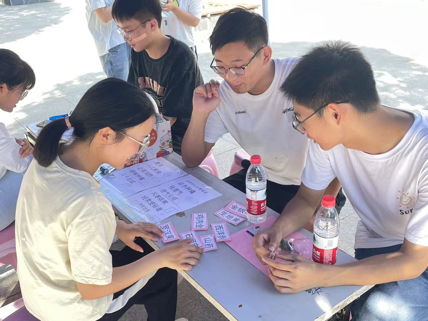 此次游园会面向全体学生,以“传承中医药文化,关爱生命健康”为主题,活动共分为三个板块:一、“巧猜药名”活动,根据提示猜出题目中的中药名称;二、“你比我猜”活动,两人参与,一人背对题板,另一人作为搭档,使用肢体语言配合搭档猜出题板上的医药相关谜题;三、“对症下药”活动,由同学们从所给答案卡中挑选出治疗题卡上症状最适合的中药。参与的同学根据其现场表现获得奖品。