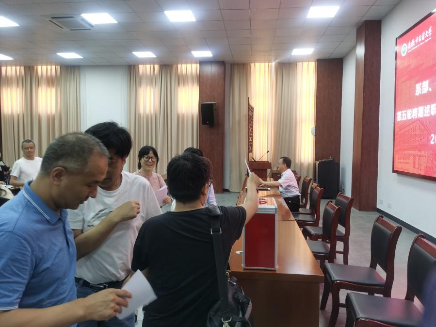 本次系部、中心主任(副主任)第五轮聘期述职考核会及第六轮聘期民主推荐会以习近平新时代中国特色社会主义思想为指导,围绕学校发展规划,以教学、科研工作为重点,充分尊重老师的个人意愿,按需设岗,公开招聘,公平竞争,发扬民主精神,通过本次大会,促进了教职工之间相互学习、交流、借鉴,有利于强化教职工工作责任感、紧迫感和使命感。(王振龙/文图 杜明/审核)