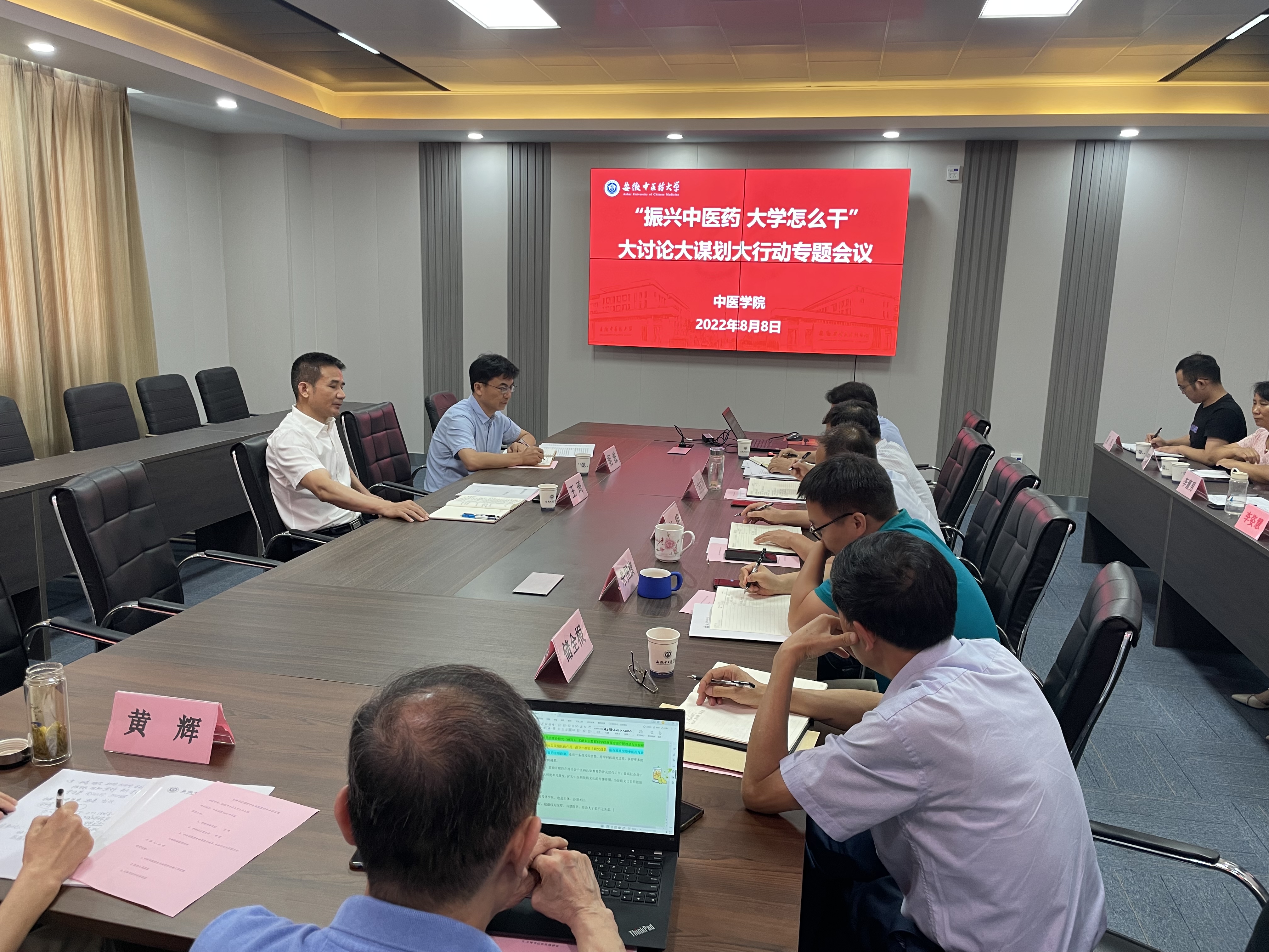 中医学院院长方向明就学院的各项工作,从基本概况、目前取得的成绩、存在问题及下一步工作计划等方面进行了专题汇报。学院部分教师代表就“振兴中医药 大学怎么干”作了精彩发言。
