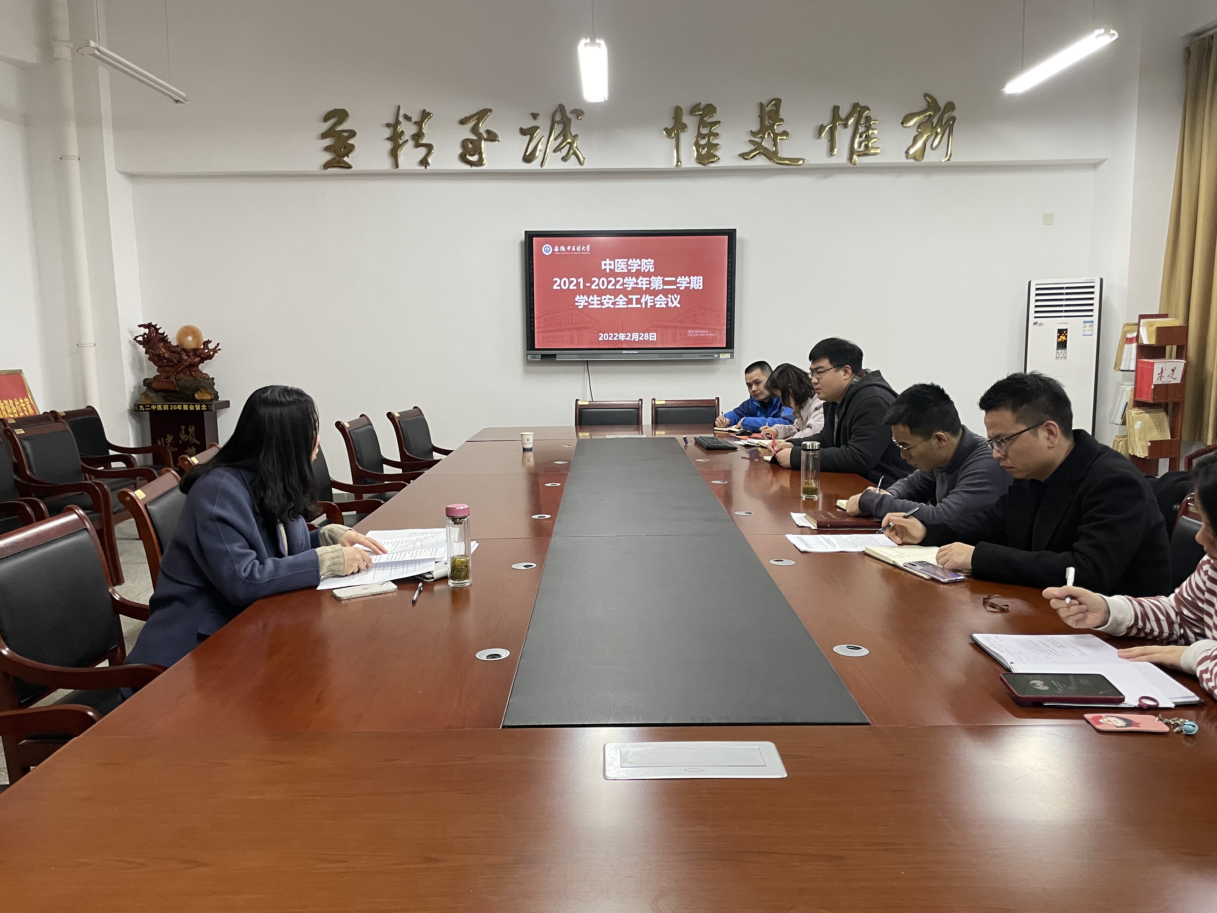 新学期伊始,为切实做好学生安全工作,2月28日下午,中医学院开展学生安全工作会议,认真布置和梳理各项涉及学生安全方面的工作事项,中医学院党委副书记宋婷婷主持会议,学院全体辅导员参加会议。
