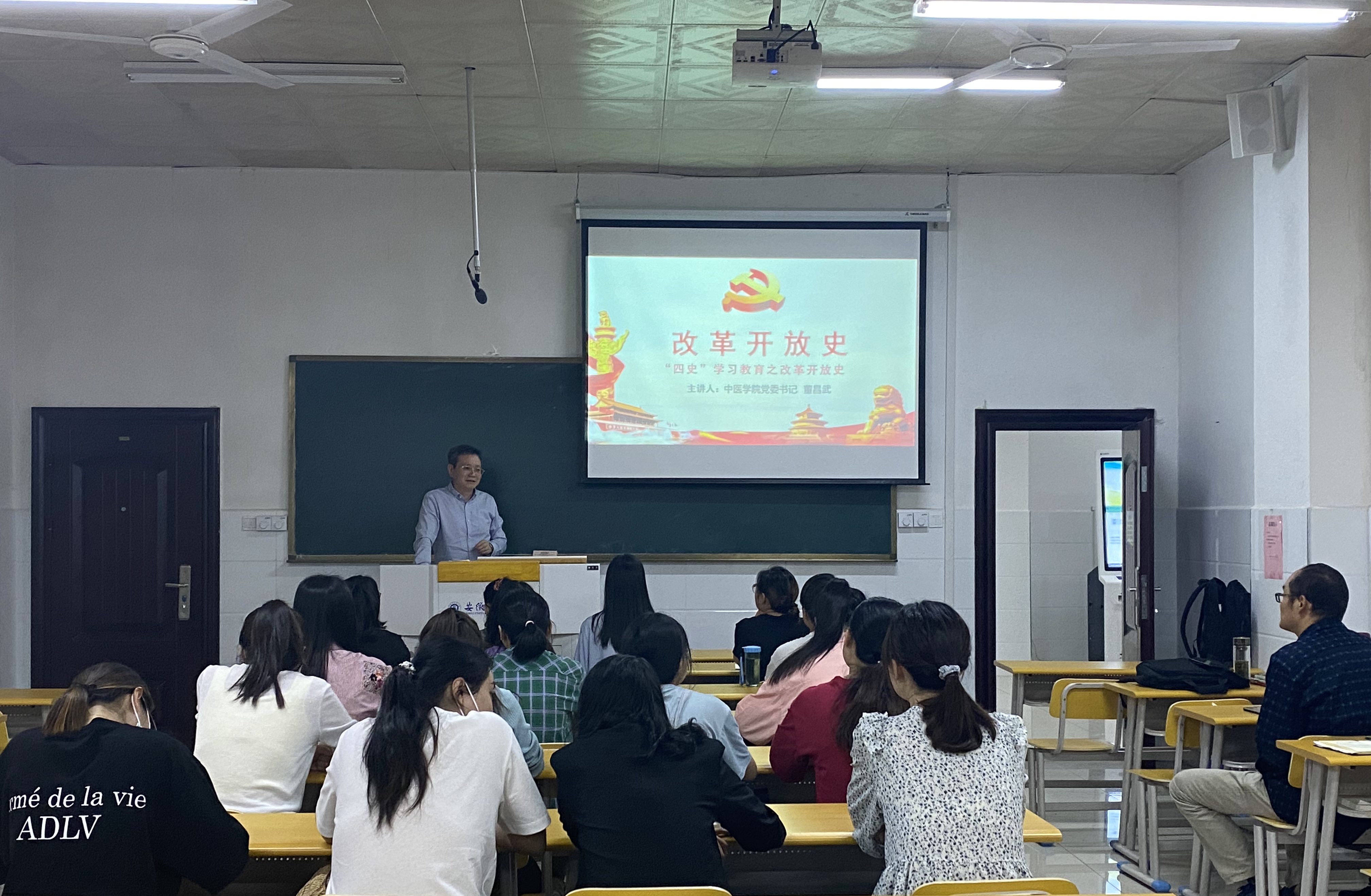 董昌武以““四史”学习教育之改革开放史”为专题给全体党员上了生动的一课。他指出,改革开放是我们党的英明决策,历经千难成就的一番伟业。在此期间我们涉过无数险滩、啃下无数硬骨头,这其中无不闪现着“敢想、敢做、敢为天下先”的改革创新精神和特殊时代意义。